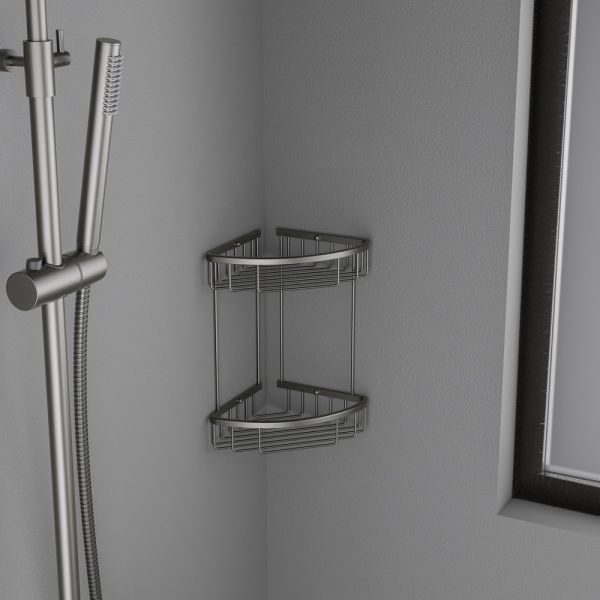 "Черное золото" - неизменно эффектный и привлекающий внимание цвет. Приглушенный мягкий оттенок черного, подчеркнет форму раковины или цвет мебели.Полка угловая двойная Timo Saona 13082 - практичный аксессуар, который дополнит интерьер в ванной комнате. Полка является удобным решением для расстановки предметов первой необходимости, поможет сохранить в помещении уют и порядок. Аксессуары для ванной комнаты и туалета - важные составляющие комфортной и продуманной обстановки. Цвет "черное золото" не капризен в уходе, на нем менее заметны загрязнения и мелкие царапины.