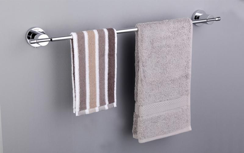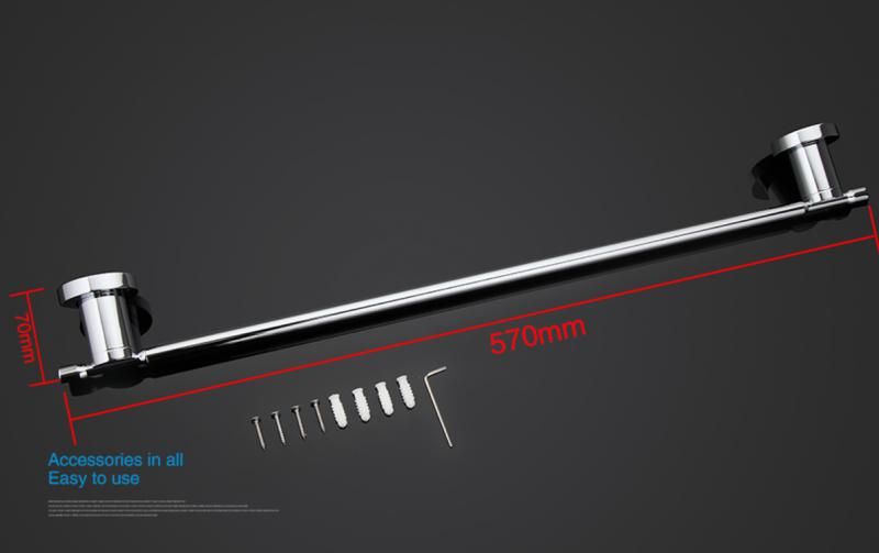 Держатель полотенец с креплением. Стойкое хромированное покрытие защищает изделие от влаги и придает ему блестящий вид. Монтаж к стене осуществляется с помощью дюбелей, идущих в комплекте.