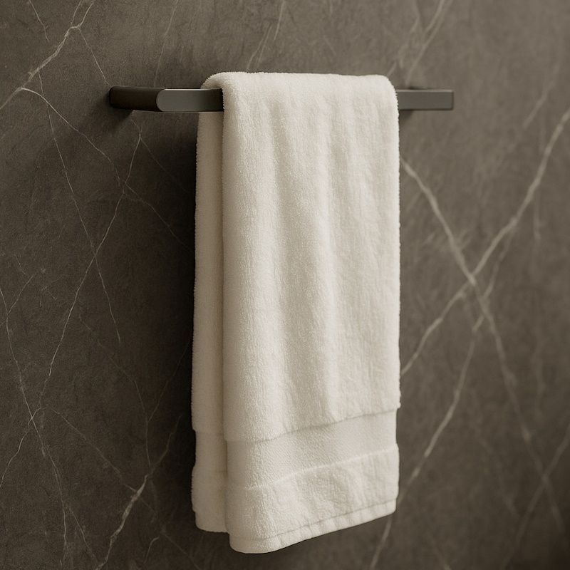 Держатель для полотенец в отделке «оружейная сталь» добавляет стильный индустриальный акцент. Изготовлен из нержавеющей стали SUS 304, устойчивой к влаге. Матовая поверхность с антиследовым покрытием обеспечивает долговечность внешнего вида.