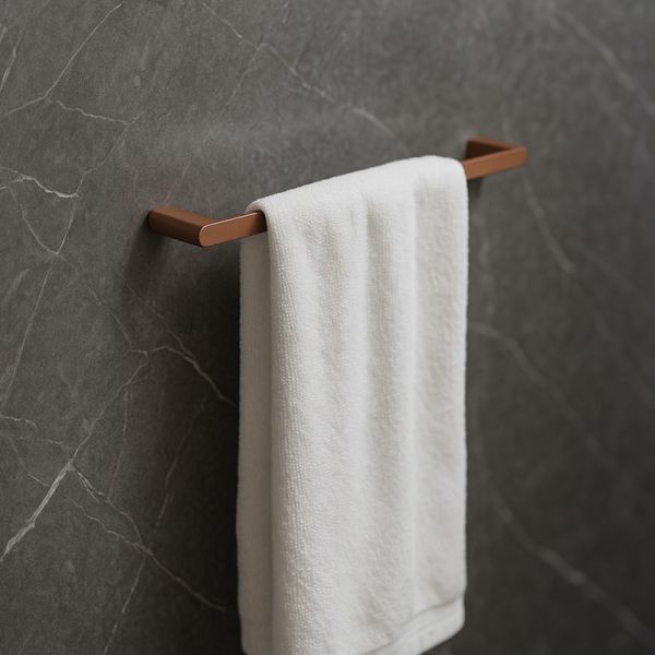 Современный держатель для полотенец в бронзовом цвете создаёт тёплую и элегантную атмосферу в ванной. Выполнен из нержавеющей стали SUS 304 для надёжности и устойчивости к коррозии. Матовая поверхность с антиследовым покрытием легко поддерживается в чистоте.