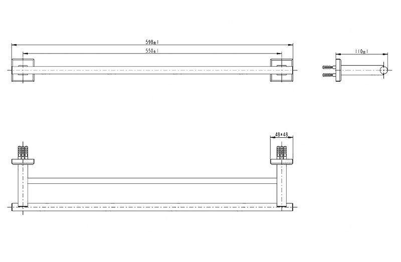Штанга комплектуется надежным креплением из нержавеющей стали, которое защитит интерьер ванной комнаты от появления ржавых подтеков на стенах в местах крепления.Размеры:550x110x119мм