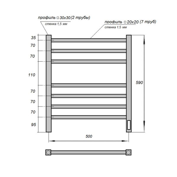 Полотенцесушитель электрический APEXTERMO Atlas AT00165BM 600x500 черный матовый Подробнее