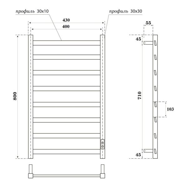 Полотенцесушитель электрический APEXTERMO Galaxy GL00184BM 800x400, черный матовый