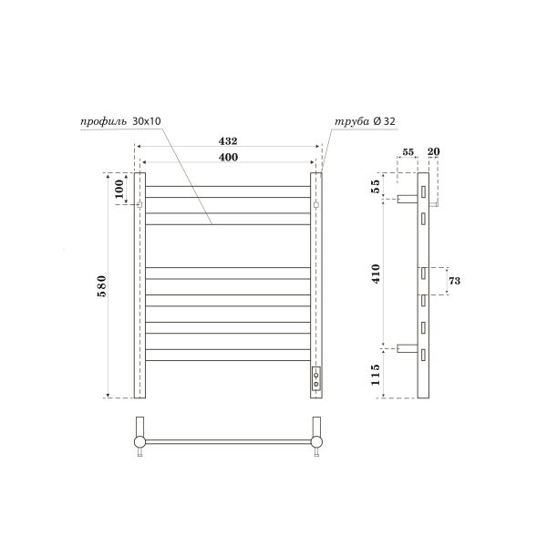 Полотенцесушитель электрический APEXTERMO Sfera SF10184BM 800x400 с крючками черный матовый