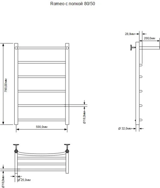 Полотенцесушитель электрический Aquanet Romeo 281991 с полкой 80x50 см хром