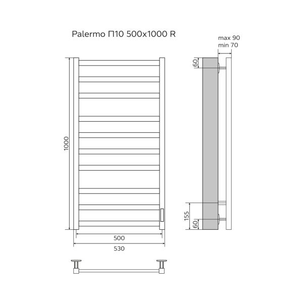Полотенцесушитель электрический AZARIO PALERMO AZ83850W 500/1000 квадрат, 10 секций, тен справа, белый купить