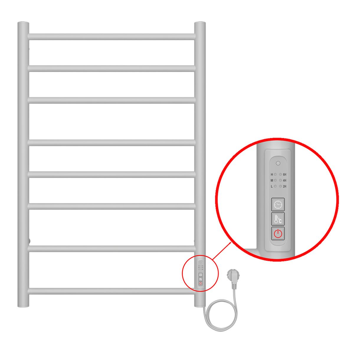 Полотенцесушитель электрический AZARIO PARMA 500/800 8 секций, диммер справа, белый AZ10858W