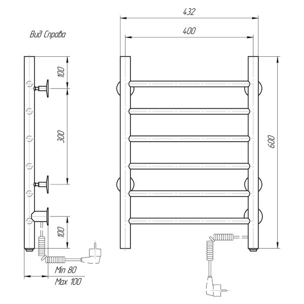 М/о расстояние (межосевое расстояние): 400Количество перекладин: 6Коллекция: АврораТип: электрическиеЦвет: черныйМощность, Вт: 52Ширина (мм): 400Высота (мм): 600Глубина (мм): 80/100Вес: 3,58Объем: 0,0385Тэн/подключение: справаСтрана: РоссияГарантия: 2 года