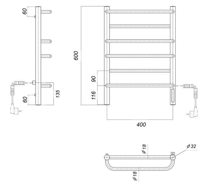 М/о расстояние (межосевое расстояние): 400Количество перекладин: 6Коллекция: ОрфейТип: электрическиеЦвет: хромМощность, Вт: 85Ширина (мм): 432Высота (мм): 600Глубина (мм): 175-165Вес: 3,8Объем: 0,024Тэн/подключение: справаСтрана: РоссияГарантия: 2 года