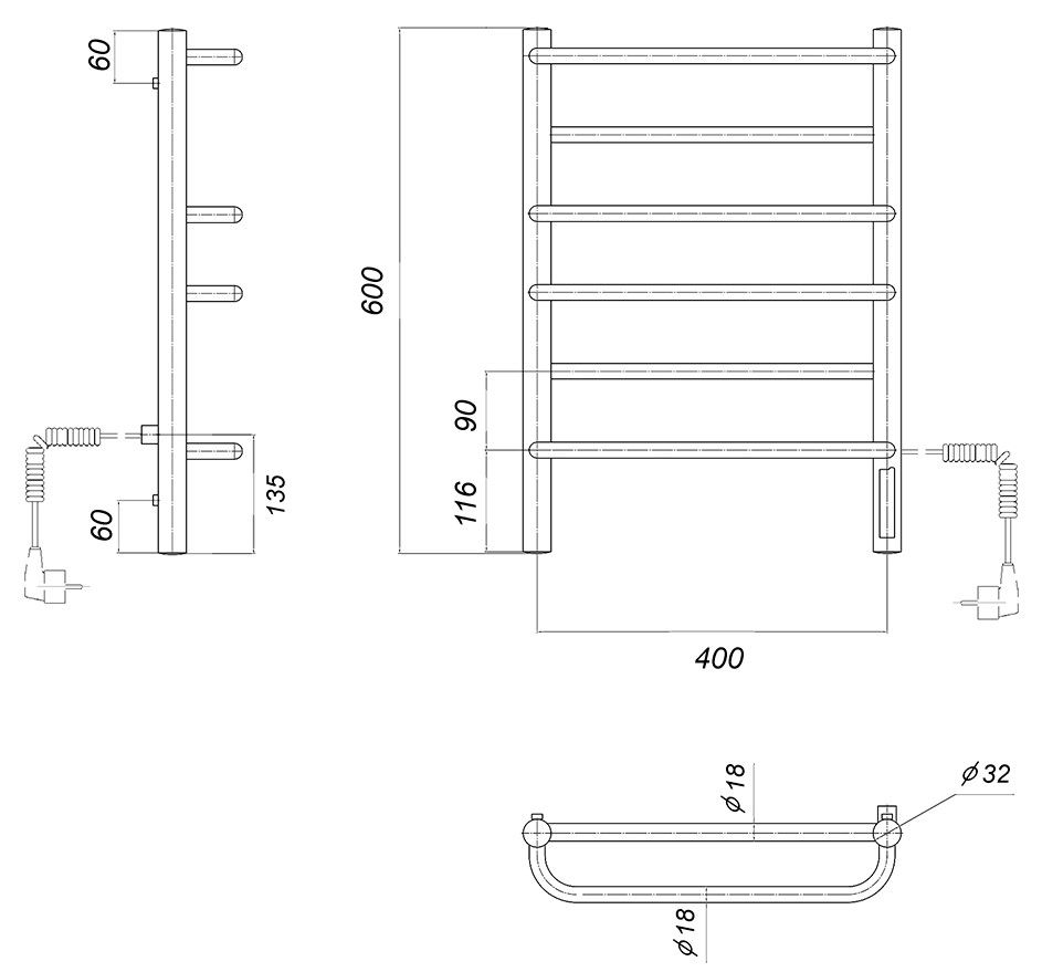 М/о расстояние (межосевое расстояние): 400Количество перекладин: 6Коллекция: ОрфейТип: электрическиеЦвет: белыйМощность, Вт: 85Ширина (мм): 432Высота (мм): 600Глубина (мм): 165-175Вес: 3,8Объем: 0,024Тэн/подключение: справаСтрана: РоссияГарантия: 2 года