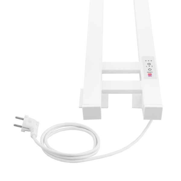 Energy Dart – узкий электрический полотенцесушитель-лесенка с терморегулятором и таймером. Нагревается за счет безопасного греющего кабеля в изоляции. Отличительная особенность модели – форма труб: вертикальные трубы имеют квадратное сечение, горизонтальные - прямоугольное сечение. В верхней и средней частях полотенцесушителя расположены крючки, на которых удобно вешать полотенца или одежду. Небольшая ширина полотенцесушителя позволяет размещать его на ограниченной площади, например, в узких нишах и простенках.Полотенцесушитель оснащен блоком управления с удобной регулировкой мощности (60%, 80% и 100%), а также времени отключения (через 2, 4 или 6 часов). Благодаря невысокой мощности имеет низкий расход электроэнергии. Подключается скрытым или наружным способом.Характеристики: