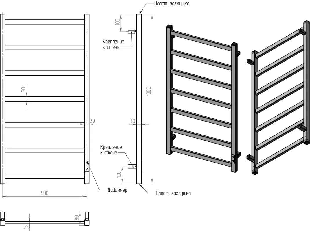 • Габариты (Ш×В): 100×50 см