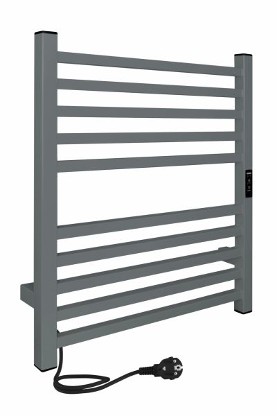 Полотенцесушитель электрический INDIGO Attic в расцветке «Magnetic Grey». Данная модель дополнена терморегулятором нагрева с тремя режимами: 40, 45, 50 градусов и таймером на отключение через 2, 4, 6 часов.