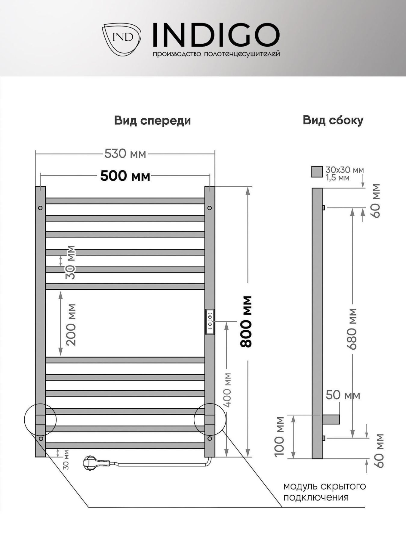 Полотенцесушитель электрический INDIGO Attic, полированный, в оттенке «Хром».