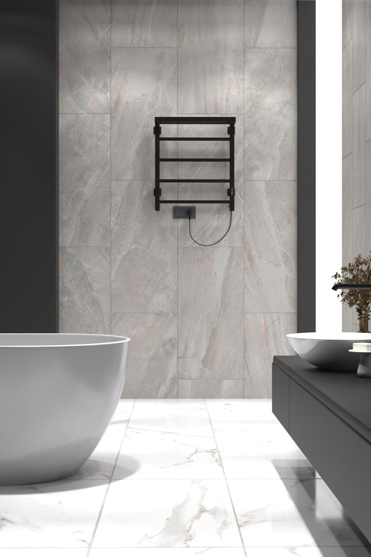 Полотенцесушитель электрический INDIGO Forma в цвете «Черный Муар». Модель имеет терморегулятор нагрева, у которого три режима: 40, 45, 50 градусов и таймер на отключение через 2, 4, 6 часов. Универсальность изделия предусматривает подключение через прямой провод или скрытое подключение без покупки дополнительного переходника. Длина прямого провода 1,1 метра.