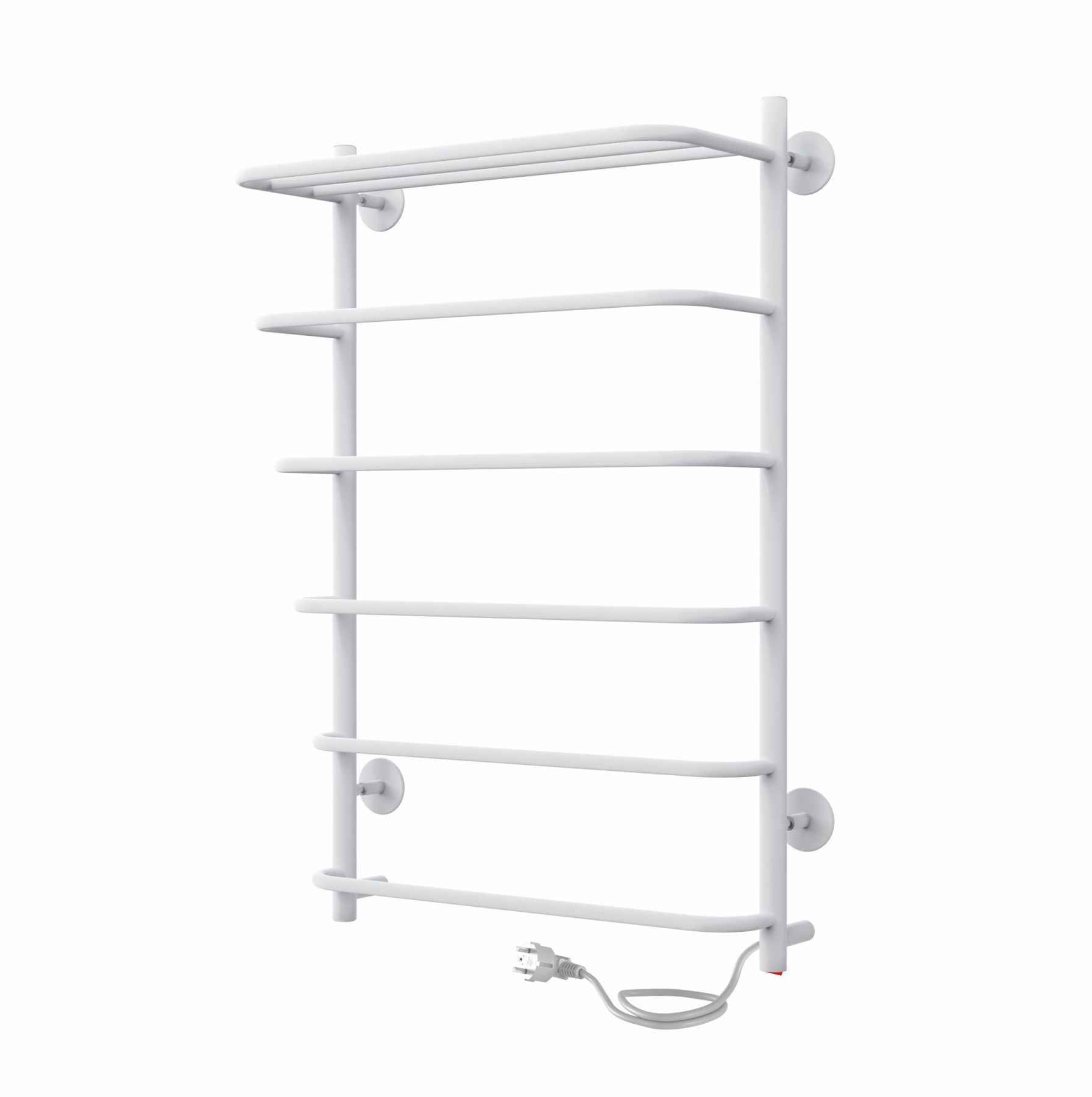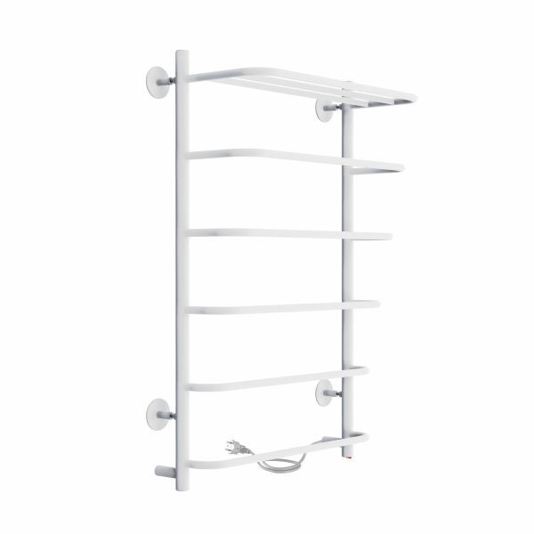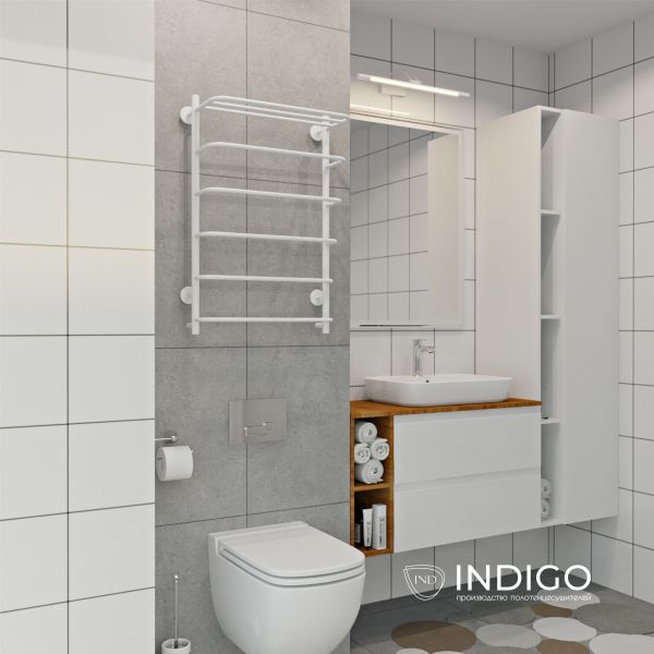 Полотенцесушитель электрический INDIGO в белом матовом оттенке. Пять перекладин и полка позволят разместить достаточное количество текстильных изделий на просушку. Электрические полотенцесушители имеют высокую тепловую эффективность, помогут избежать появление плесени в ванной комнате, обеспечат быструю сушку текстильных изделий вне зависимости от отопительного сезона.
