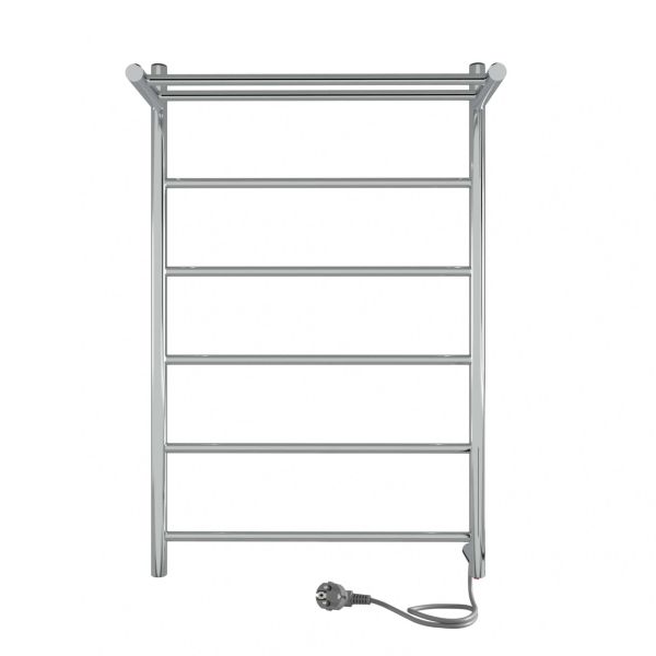 Электрический энергосберегающий полотенцесушитель торговой марки INDIGO Line с пятью прямыми перекладинами и полкой. Ширина изделия 50 см. Витой шнур органично и аккуратно смотрится с полотенцесушителем. Кнопка вкл/выкл. находится на вилке. Возможно как правостороннее подключение, так и левостороннее.