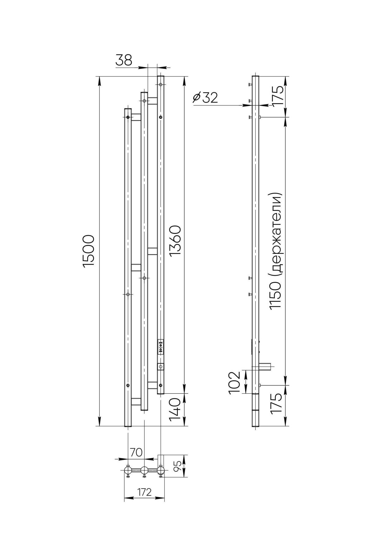 Полотенцесушитель электрический Indigo Sky LSKE150-17Rt 150x17 см хром