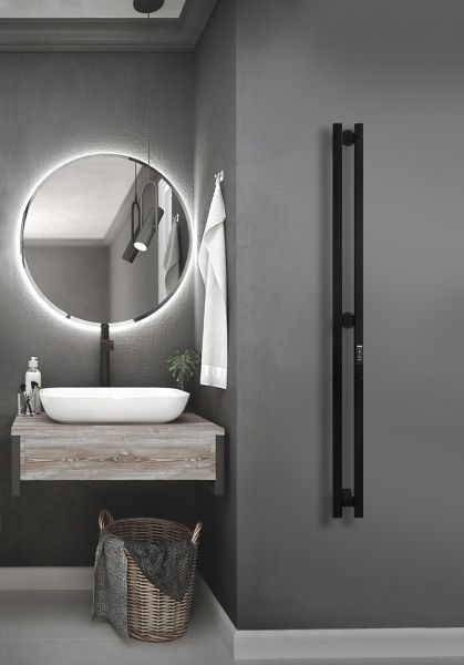 Полотенцесушитель электрический Style PRO с уникальной формой и высокой функциональностью. Выполнен в цвете «Черный Муар», подойдет для компактной ванной.