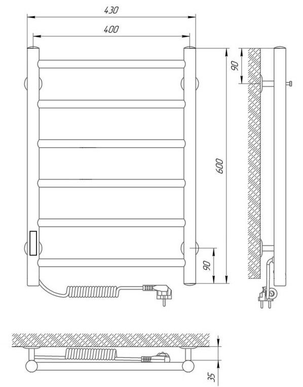 Модель: ДжазКод товара: 73207469Материал: сталь нержавеющая AISI304Диаметры и толщина: стойка Ø32, толщина 1,5 мм; перемычка Ø20, толщина 1,5 ммРегулятор: на стойке (программируемый регулятор с таймером)Терморегулятор: даТаймер: даВозможность скрытого монтажа: да (приобретается отдельно)Размещение шнура: слева (Также есть исполнение с правым подключением)Температура поверхности изделия*: 50±5°CНапряжение питания: 220 ВВес: 3,3 кгКомплектация: