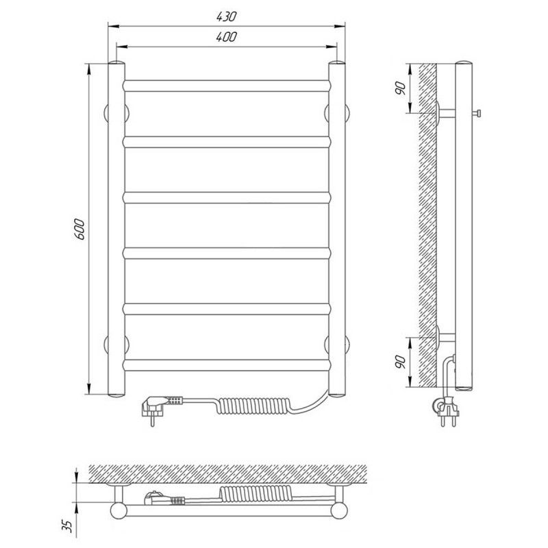 Модель: ДжазКод товара: 73207470Материал: сталь нержавеющая AISI304Диаметры и толщина: стойка Ø32, толщина 1,5 мм; перемычка Ø20, толщина 1,2 ммРегулятор: на стойке (программируемый регулятор с таймером)Терморегулятор: даТаймер: даВозможность скрытого монтажа: да (приобретается отдельно)Размещение шнура: справа (Также есть исполнение с левым подключением)Температура поверхности изделия*: 50±5°CНапряжение питания: 220 ВВес: 3,3 кгКомплектация: