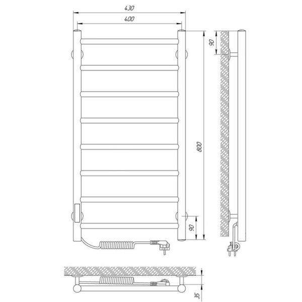 Модель: ДжазКод товара: 73207473Материал: сталь нержавеющая AISI304Диаметры и толщина: стойка Ø32, толщина 1,5 мм; перемычка Ø20, толщина 1,2 ммРегулятор: на стойке (программируемый регулятор с таймером)Терморегулятор: даТаймер: даВозможность скрытого монтажа: да (приобретается отдельно)Размещение шнура: слева (Также есть исполнение с правым подключением)Температура поверхности изделия*: 50±5°CНапряжение питания: 220 ВВес: 4,56 кгКомплектация: