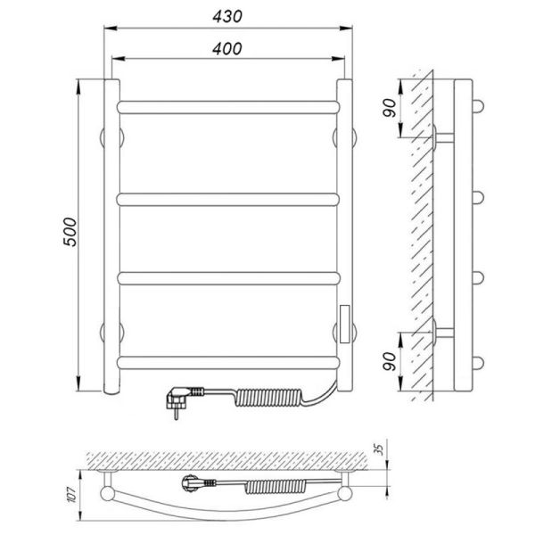 Модель: КлассикКод товара: 73207641Материал: сталь нержавеющая AISI304Диаметры и толщина: стойка Ø32, толщина 1,5 мм; перемычка Ø20, толщина 1 ммРегулятор: на стойке (программируемый регулятор)Терморегулятор: даТаймер: даВозможность скрытого монтажа: да (приобретается отдельно)Размещение шнура: справа (Также есть исполнение с левым подключением)Температура поверхности изделия*: 50±5°CНапряжение питания: 220 ВВес: 3 кгКомплектация: