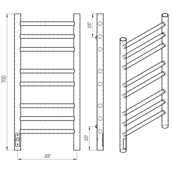 Полотенцесушитель электрический Laris Лаванда ЧКЧ П8 300х700 L 73207624 Черный муарЭлектрический ПС изготовлен из конструкционной стали с толщиной стенки 1,5 мм для обеспечения оптимальной температуры нагрева изделия. Внутри установлен сухой ТЭН который обеспечивает экономию энергии,увеличивает срок службы изделия (по сравнению с изделиями с жидкостным теплоносителем). ТЭН имеет 3 степени защиты-от пыли,влаги, перегрева -100 процентная безопасность при эксплуатации! Гарантия 5 лет на изделие и лакокрасочное покрытие. Краска порошковая черная - матовая (муар) RAL 9005 с фосфотирующей основой. Терморегулятор кнопочный на стойке с функцией таймера. Температура нагрева поверхности изделия 50-55C. Для скрытого подключения изделие укомплектовано модулем скрытого подключения. Изделия торговой марки Laris имеют высокий уровень эксплуатационной надежности, обладают хорошей функциональностью при использовании. ТМ Laris - Репутация Комфорта