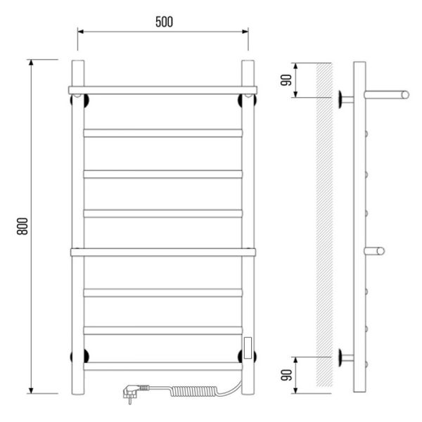 Модель: ЛавинаКод товара: 73207651Материал: нержавеющая стальПокрытие: хром отполированный до зеркального блескаДиаметры и толщина: стойка Ø32, толщина 1,5мм; перемычка Ø20, толщина 1,5 ммРегулятор: на стойкеТерморегулятор: даТаймер: даВозможность скрытого монтажа: даРазмещение шнура: справа (Также есть исполнение с левым подключением)Температура поверхности изделия*: 50±5°CНапряжение питания: 220 ВВес: 4,72 кгКомплектация: