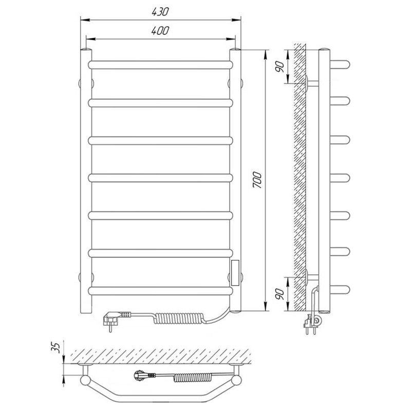 Модель: ВикторияКод товара: 73207639Материал: сталь нержавеющая AISI304Диаметры и толщина: стойка Ø32, толщина 1,5 мм; перемычка Ø20, толщина 1,5 ммРегулятор: на стойке (программируемый регулятор с таймером)Терморегулятор: даТаймер: даВозможность скрытого монтажа: да (приобретается отдельно)Размещение шнура: справа (Также есть исполнение с левым подключением)Температура поверхности изделия*: 50±5°CНапряжение питания: 220 ВВес: 5 кгКомплектация: