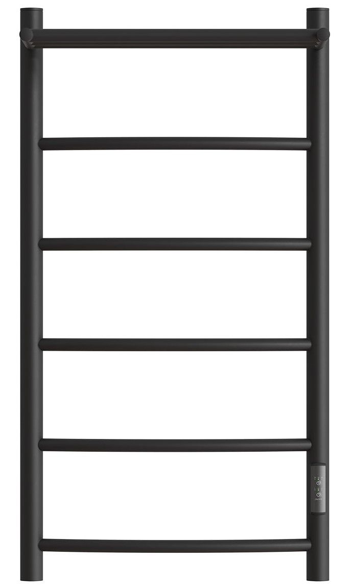 Электрические полотенцесушители с греющим кабелем Афина с полкой в цвете черный матовый (RAL 9005) и белый матовый (RAL 9016) выполнены из конструкционной стали с толщиной стенки 1,5 мм.Полотенцесушители оборудованы блоками управления с таймером (3 режима - 2,4,6 часов) и возможностью регулировки температуры (3 температурных режима). Блок управления расположен на правой стойке.