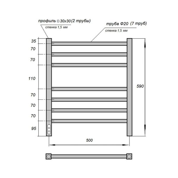Электрический полотенцесушитель с греющим кабелем.