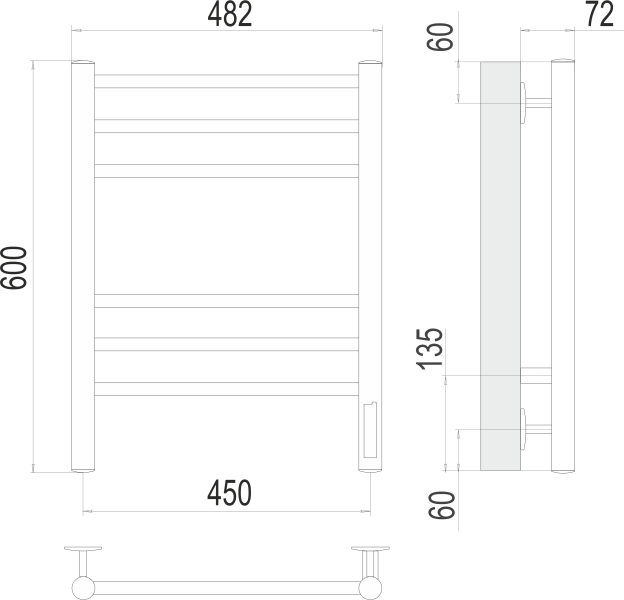 Полотенцесушитель электрический Terminus Аврора П6 450х600 электро КС 9005 матовый
