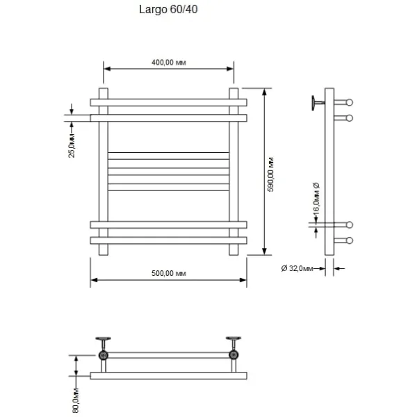 Полотенцесушитель водяной Aquanet Largo 266743 60x40 см хром купить