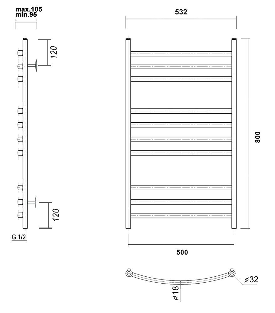 М/о расстояние (межосевое расстояние): 500Количество перекладин: 10Коллекция: КалипсоТип: водяныеЦвет: белыйШирина (мм): 532Высота (мм): 800Глубина (мм): 105-95Вес: 4,95Объем: 0,071Тэн/подключение: нижнееСтрана: РоссияГарантия: 10 лет