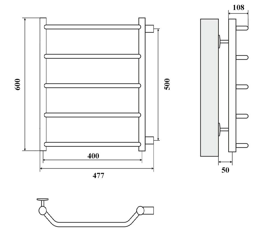 М/о расстояние (межосевое расстояние): 500Количество перекладин: 5Коллекция: ЛаураТип: водяныеЦвет: хромШирина (мм): 477Высота (мм): 600Глубина (мм): 135-145Вес: 3,6Объем: 0,0394Тэн/подключение: боковоеСтрана: РоссияГарантия: 10 лет