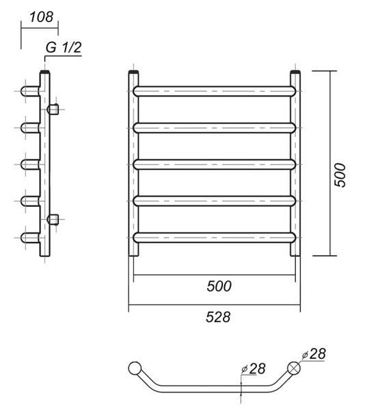 Полотенцесушитель водяной Domoterm Лаура Плюс П5 500x500 АБР бронза