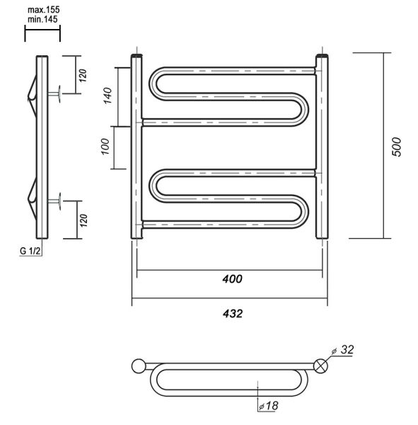 М/о расстояние (межосевое расстояние): 400Количество перекладин: 6Коллекция: ОфелияТип: водяныеЦвет: хромШирина (мм): 432Высота (мм): 500Глубина (мм): 145/155Вес: 4,3Объем: 0,259Тэн/подключение: нижнееСтрана: РоссияГарантия: 10 лет