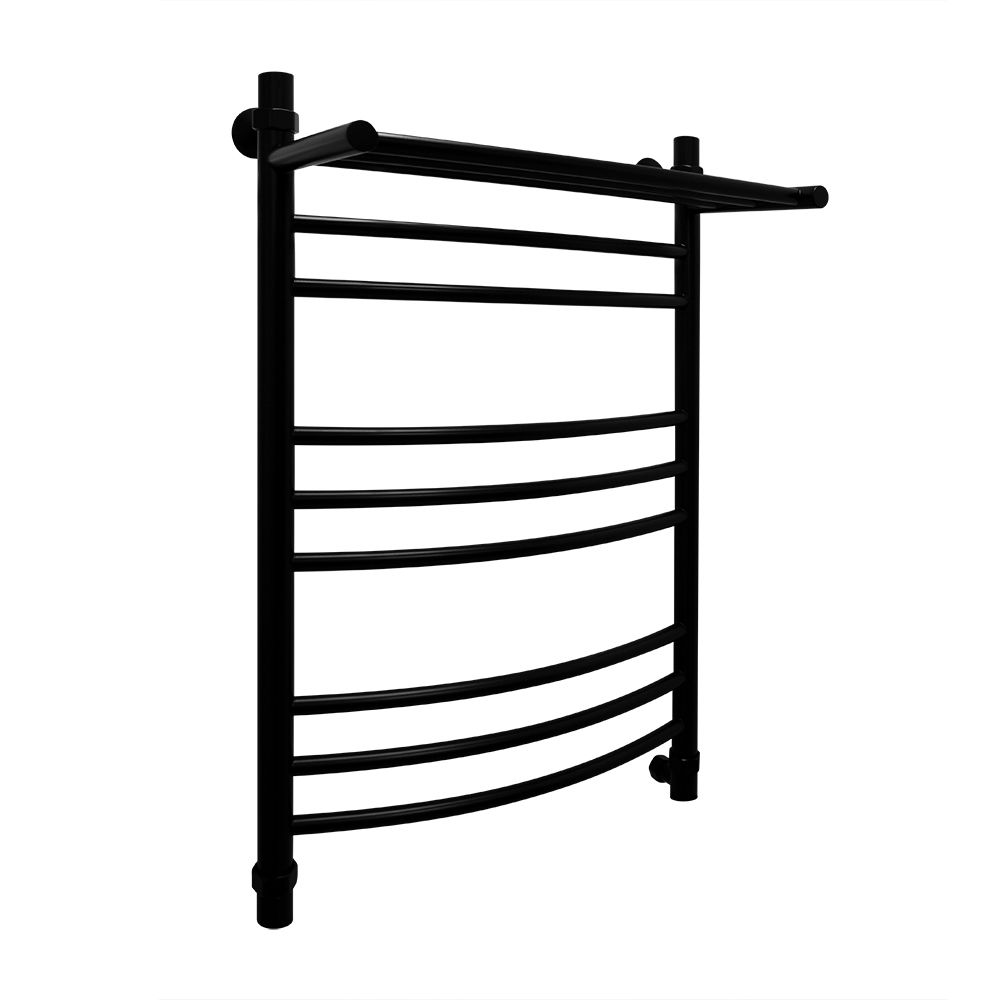 Водяной полотенцесушитель Energy Prestige Modus 800x500 RAL 9005 (черный матовый) - «лесенка c полкой» c выпуклыми перемычками, размещёнными группами. Дополнительная обогреваемая полка с 3 перекладинами увеличивает тепловую мощность и полезную площадь прибора, а также позволяет максимально удобно располагать на нем вещи для просушивания. Используется во всех системах горячего водоснабжения и отопления с рабочим давлением 3 - 15 атм при температуре теплоносителя до 105°С.Межцентровое расстояние: 800 мм (+/-5 мм) при боковом и диагональном подключении, 500 мм (+/-5 мм) при нижнем подключении.В комплектацию входят эксцентрики, позволяющие отрегулировать межцентровое расстояние.Полотенцесушитель изготовлен из высококачественной импортной пищевой нержавеющей стали марки AISI 304 (08Х18Н10). Поверхность изделия окрашена по технологии цветного порошкового напыления - достоинства этой технологии в том, что получаемые изделия прочны, долговечны и экологичны. Сварка швов выполнена по специальной технологии TIG по международному стандарту EN 10217-7. Полотенцесушитель испытан при давлении 50 атм, составляющая его труба — 150 атм, благодаря чему имеет большой запас прочности.Произведен в России. Гарантийный срок - 5 лет. Комплектуется всем необходимым для монтажа. Вся фурнитура производится итальянской фирмой Smart.Комплектация полотенцесушителя: