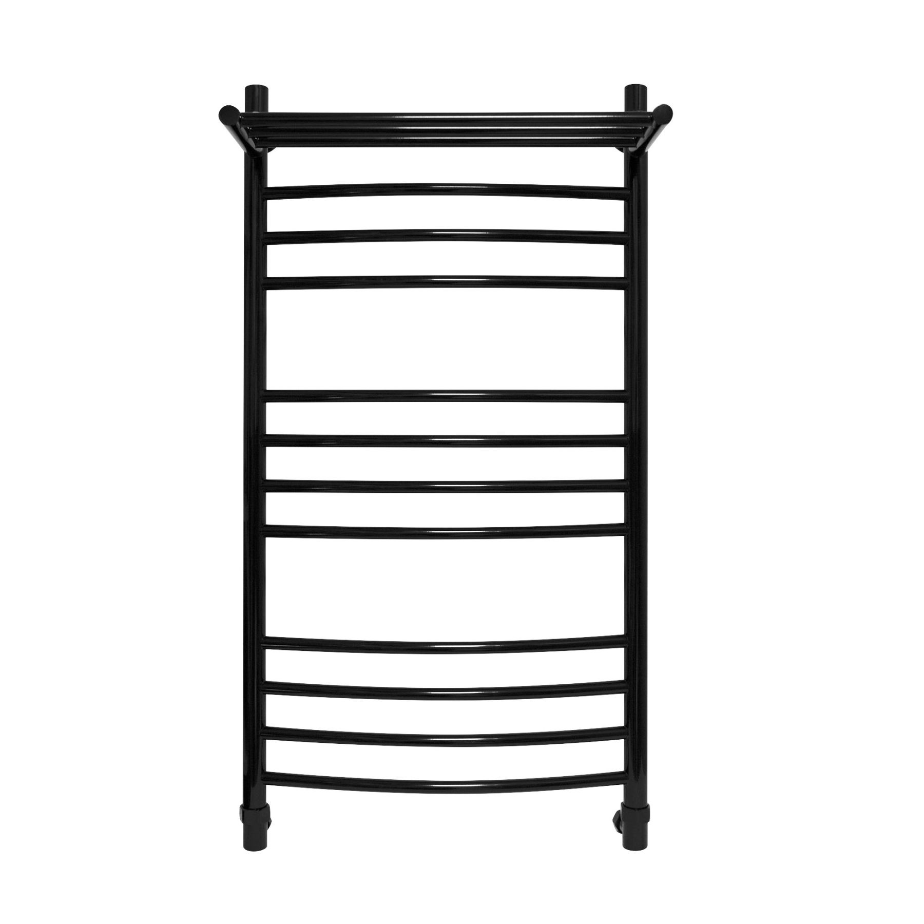 Водяной полотенцесушитель Energy Prestige Modus 1000x500 RAL 9005 (черный матовый) - «лесенка c полкой» c выпуклыми перемычками, размещёнными группами. Дополнительная обогреваемая полка с 3 перекладинами увеличивает тепловую мощность и полезную площадь прибора, а также позволяет максимально удобно располагать на нем вещи для просушивания. Используется во всех системах горячего водоснабжения и отопления с рабочим давлением 3 - 15 атм при температуре теплоносителя до 105°С.Межцентровое расстояние: 1000 мм (+/-5 мм) при боковом и диагональном подключении, 500 мм (+/-5 мм) при нижнем подключении.В комплектацию входят эксцентрики, позволяющие отрегулировать межцентровое расстояние.Полотенцесушитель изготовлен из высококачественной импортной пищевой нержавеющей стали марки AISI 304 (08Х18Н10). Поверхность изделия окрашена по технологии цветного порошкового напыления - достоинства этой технологии в том, что получаемые изделия прочны, долговечны и экологичны. Сварка швов выполнена по специальной технологии TIG по международному стандарту EN 10217-7. Полотенцесушитель испытан при давлении 50 атм, составляющая его труба — 150 атм, благодаря чему имеет большой запас прочности.Произведен в России. Гарантийный срок - 5 лет. Комплектуется всем необходимым для монтажа. Вся фурнитура производится итальянской фирмой Smart.Комплектация полотенцесушителя:
