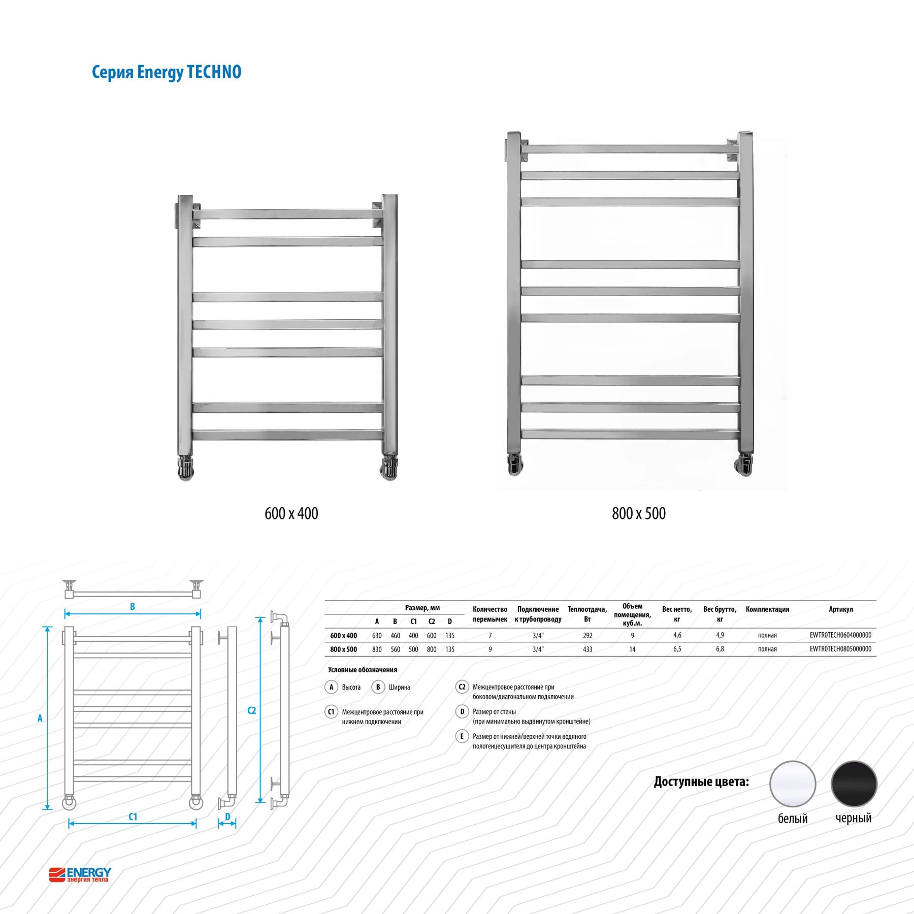 Полотенцесушитель водяной Energy Techno EWTR0TECH06040R905M 600 x 400 черный матовый купить