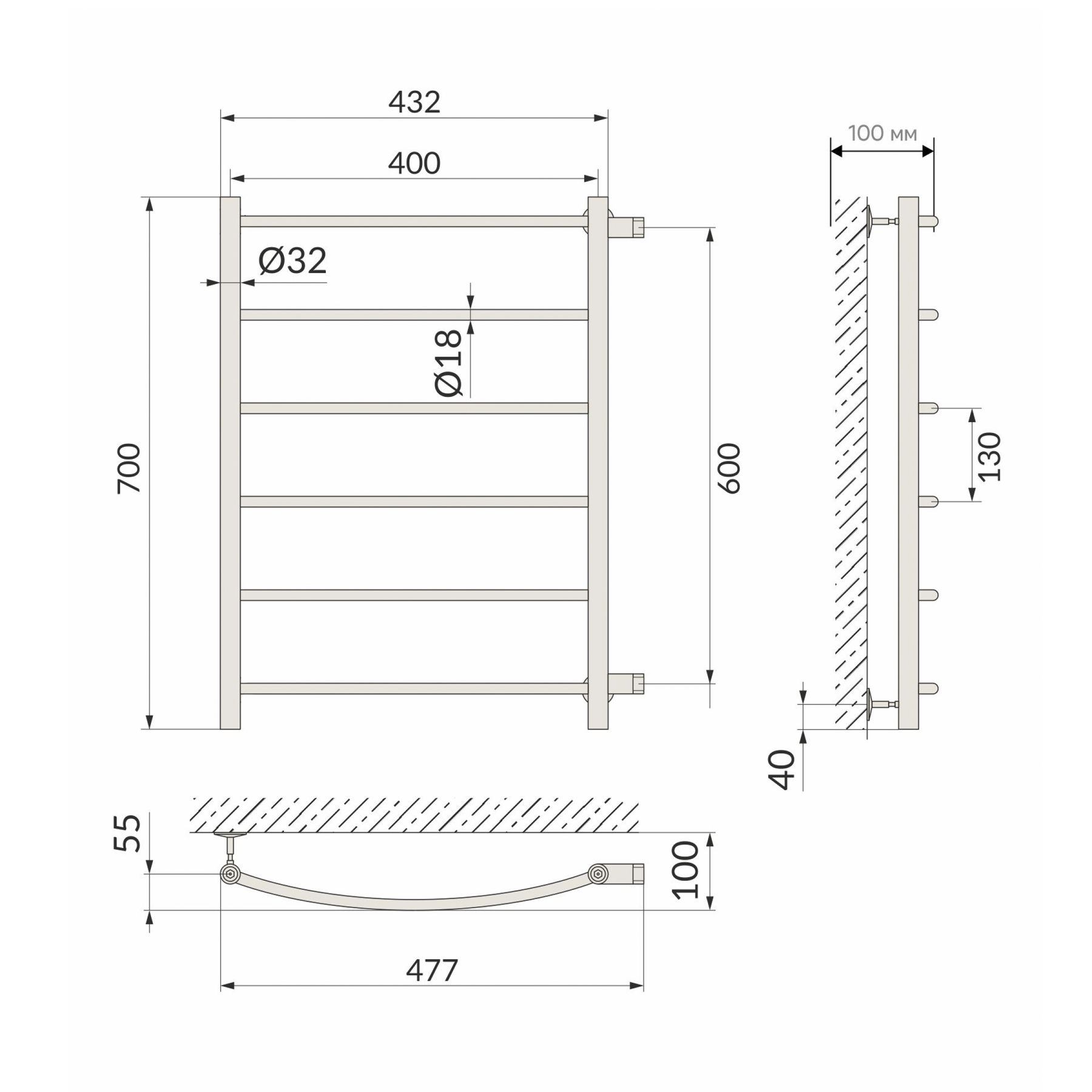 Полотенцесушитель имеет дугообразные перекладины, что очень удобно при эксплуатации.
