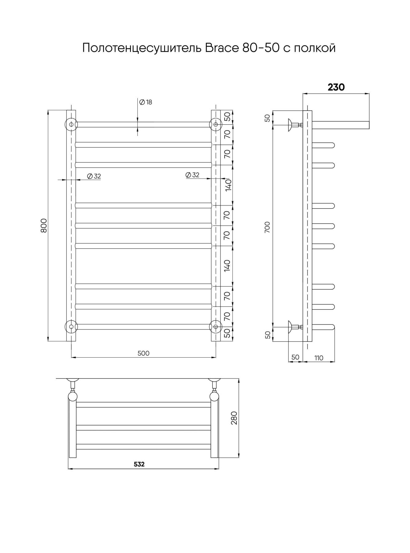 Полотенцесушитель Brace с полкой выполнен в цвете «Золото». Удобен в использовании. Большое количество перекладин позволяет сушить достаточное количество изделий. Водяные полотенцесушители для ванной хорошо справляются со своей задачей, они предотвращают повышенную влажность в ванной комнате и предотвращают появление плесени и грибка.