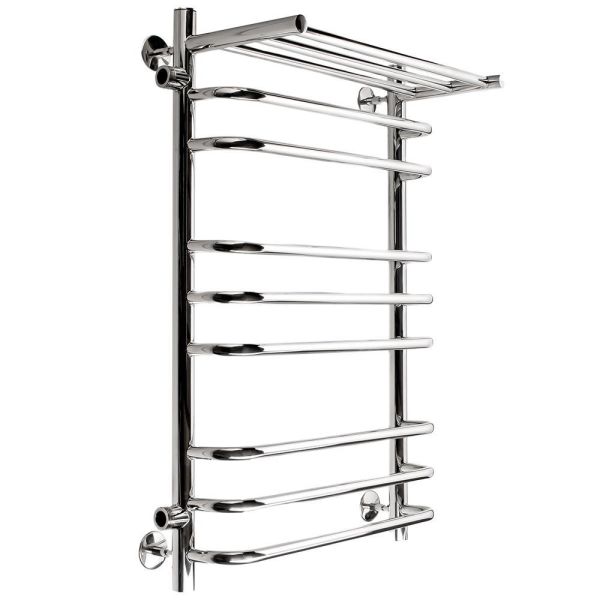 Полотенцесушитель водяной INDIGO Brace с полкой многофункционален и удобен в использовании.  Выбирают за его скобообразные перекладины и интересный стиль. Полотенцесушитель боковой изготовлен из высококачественной нержавеющей стали. Качественная металлообработка в местах подключений обеспечивает плотное прилегание прокладки.