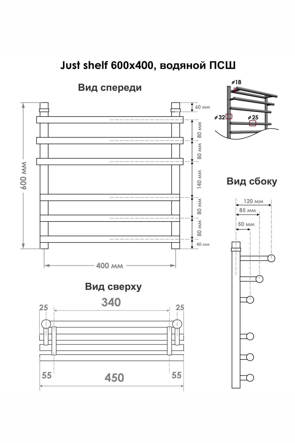 Водяной полотенцесушитель серии «Лесенка» Just Shelf – стильное решение для ванной комнаты. Перекладины выдвинуты на разное расстояние от коллектора, что позволяет одновременно просушить несколько полотенец.  Выполнен из высококачественной нержавеющей стали, не подвергается воздействию ржавчины и коррозии.