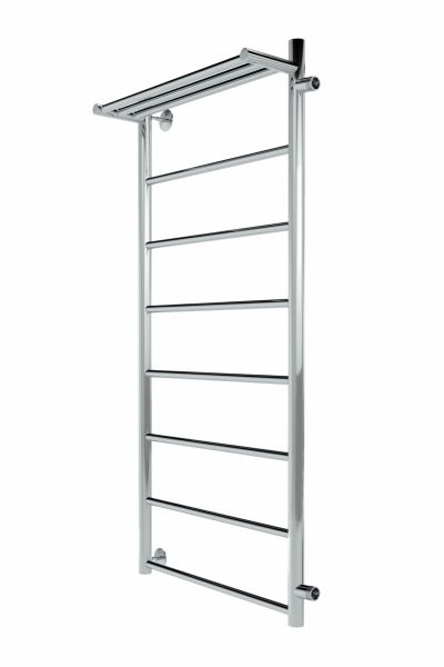 Водяной полотенцесушитель в форме Лесенки Line с полочкой – это оригинальная модель с прямыми перекладинами с дополнительной полкой для полотенец, халатов и других мелочей. Полотенцесушитель марки INDIGO выполнен из нержавеющей стали.