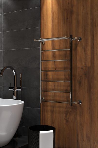 Водяной полотенцесушитель в форме Лесенки Line с полочкой – это оригинальная модель с прямыми перекладинами с дополнительной полкой для полотенец, халатов и других мелочей. Полотенцесушитель марки INDIGO выполнен из нержавеющей стали.