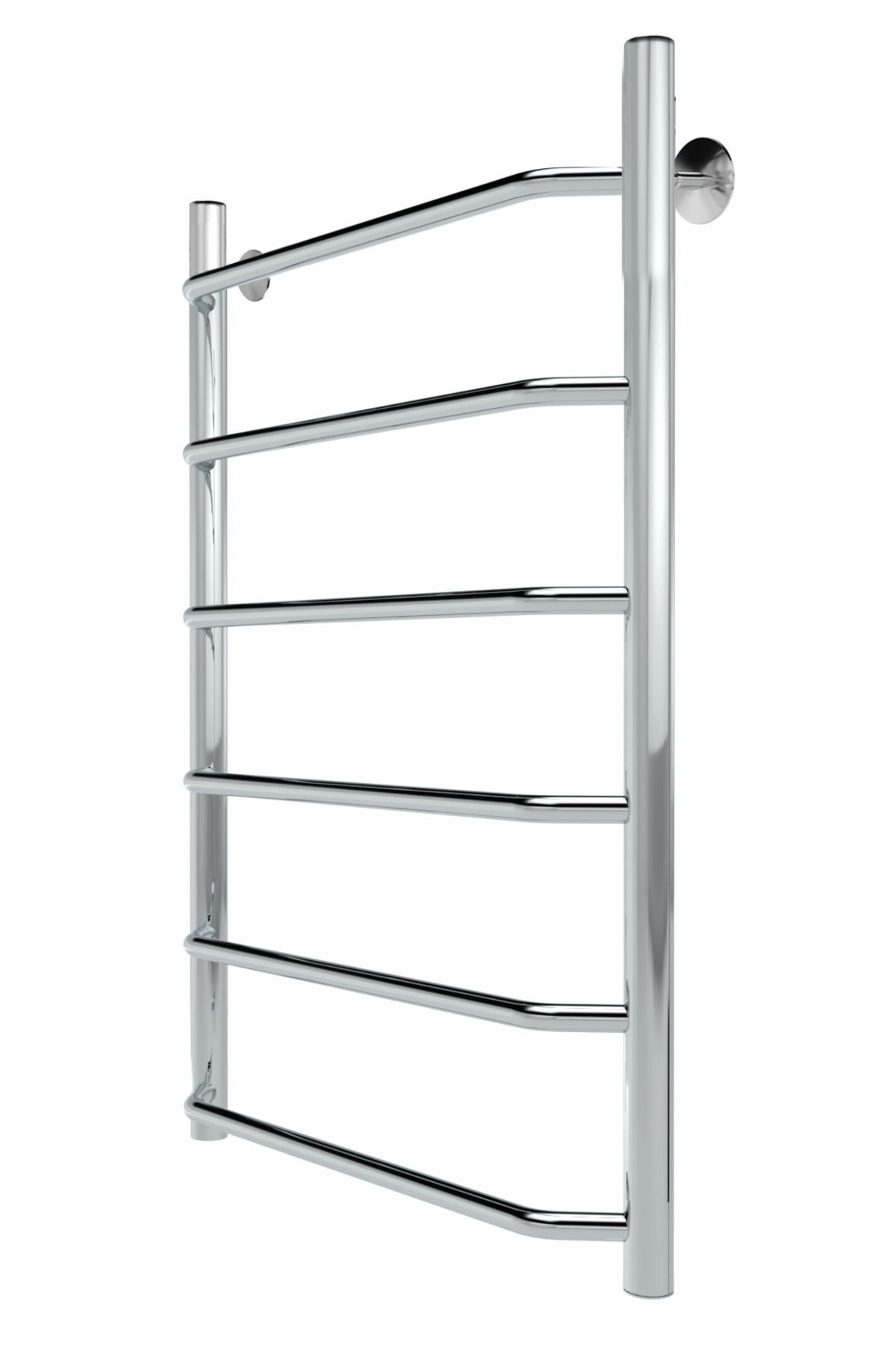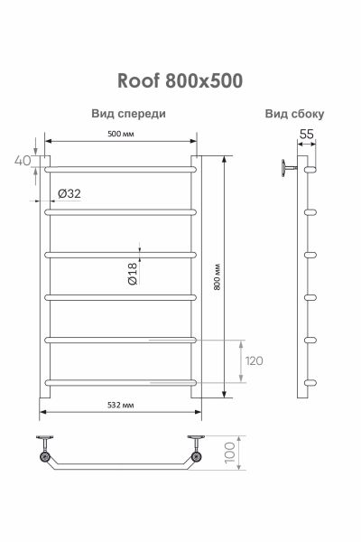 Водяной полотенцесушитель Roof в цвете «Хром» со скобообразными перекладинами, имеет нижнее подключение. Широкие и удобные перекладины позволяют комфортно расположить текстильные изделия на сушку.  При этом полотенцесушитель водяной лесенка хорошо справляется со своей задачей обеспечивая сушку полотенцам и халатам, а также поддерживая комфортную атмосферу, предотвращает появление плесени. Тщательная полировка изделия придает ей великолепный оттенок «хром».
