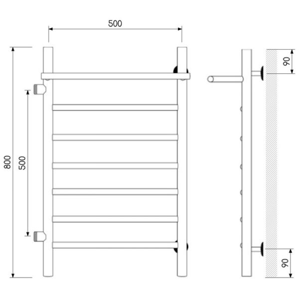 Полотенцесушитель водяной Laris Классик 73208018 левый с полкой П7 50x80см хром