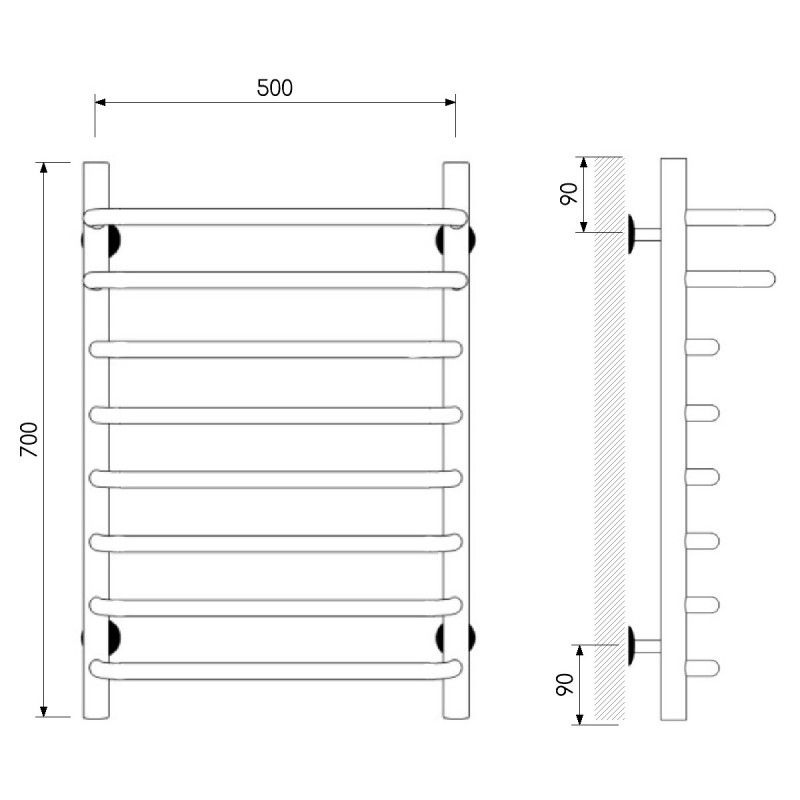 Полотенцесушитель изготовлен из нержавеющей стали — износостойкого и не подверженного коррозии материала, легко выдерживающего агрессивную среду систем отопления.